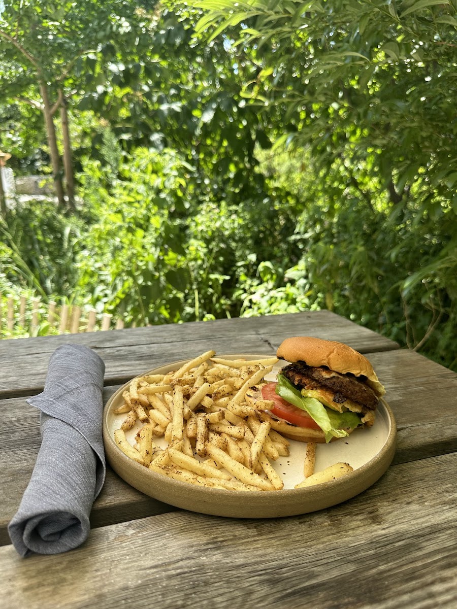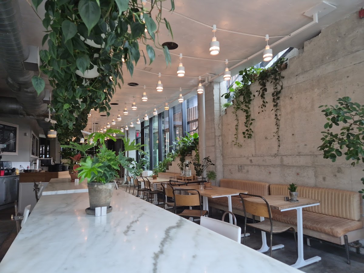 Beautiful café. Plants everywhere Great location right under the Brooklyn Bridge.